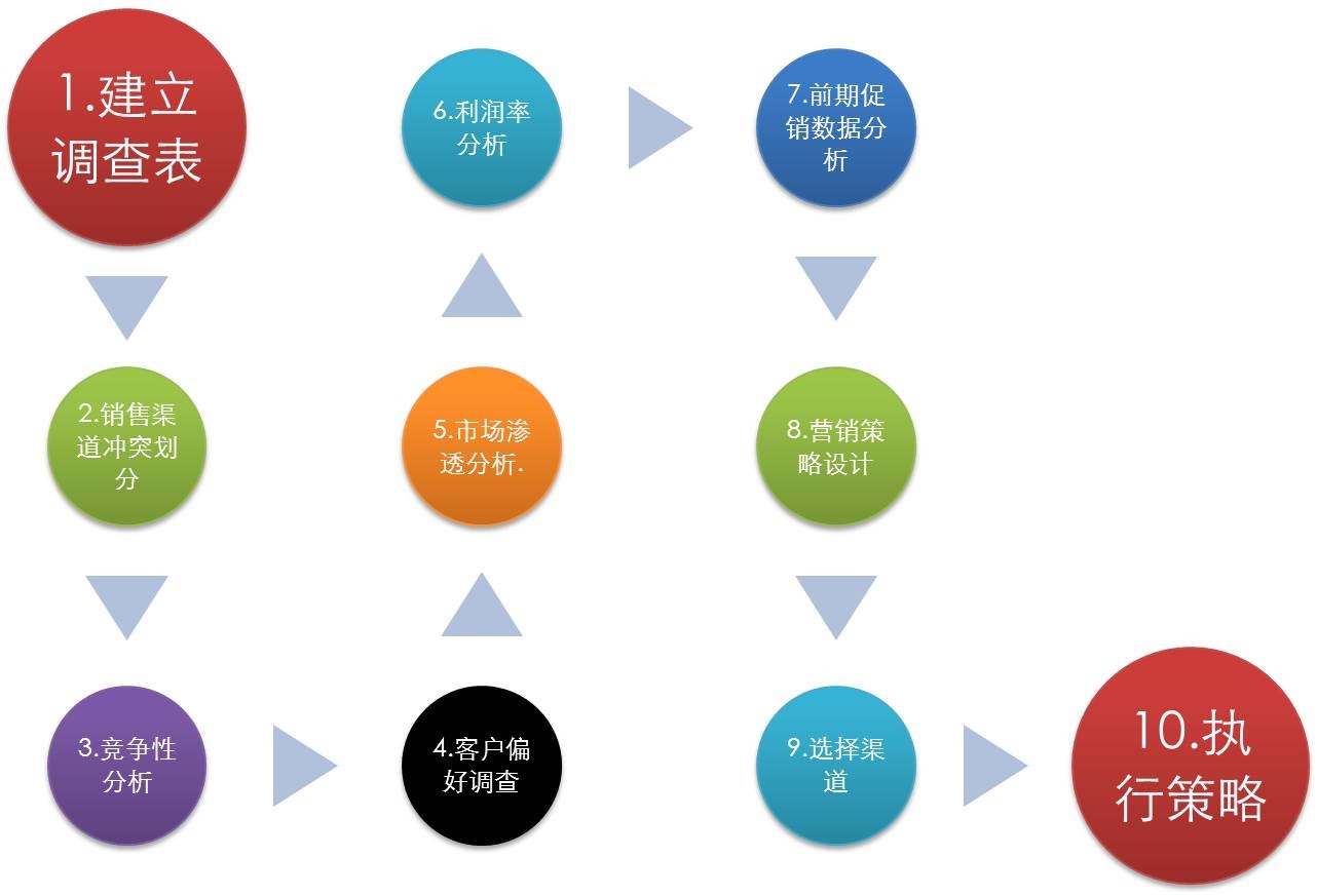 1)建立完整的營銷渠道調查表,通過銷售業務員、代理商、直銷商、電話銷售、OEM、零售網點、展覽會、網上銷售等渠道獲得基本信息;